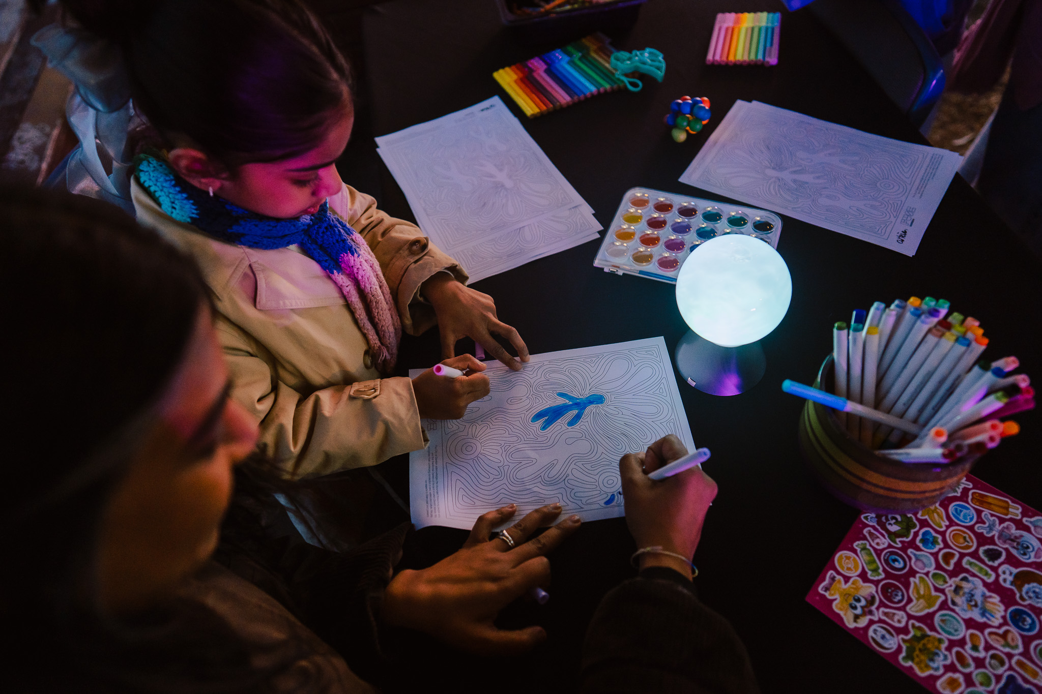 Also on offer is a colouring in sheet by visual artist Arkie Barton (Kalkadoon and Bidjara) for kids to colour in while they are listening to the stories.